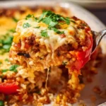This casserole is family-approved and weeknight-friendly. It trims the prep time of traditional stuffed peppers while keeping the same cozy flavor profile. It’s both kid-friendly and adaptable: swap the beef for turkey or a plant-based crumble for a lighter version. The cheese topping creates a bubbly golden crust that makes every bite indulgent without being complicated.