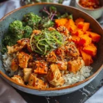 - Plating tip: create a color contrast by placing rice first, then arranging sweet potatoes, chicken, and greens in sections for a pretty bowl.