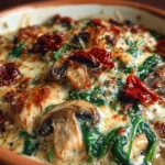 Creamy Baked Mushrooms with Spinach, Sun-Dried Tomatoes & Chicken