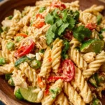 This recipe became a family favorite because it balances textures and flavors: creamy-salty sauce, tangy lime, crunchy veggies, and soft pasta. If you enjoy bold dressings, you might also like this variation with a smoky twist: savory BBQ chicken pasta salad.