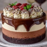 This triple chocolate mousse tuxedo cake is special because it balances intense chocolate flavor with featherlight mousse layers and a crisp, shiny ganache finish. It is family-approved, impressive for guests, and adaptable for dietary swaps. The layers create a dramatic look when sliced and a luxurious mouthfeel that keeps everyone asking for seconds.